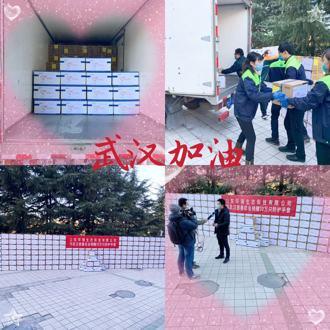山東環(huán)瑞生態(tài)于2月17日向武漢慈善總會(huì)捐贈(zèng)了30萬只防護(hù)手套,一箱一箱的手套不僅代表了公司的心意,還承載了我們同舟共濟(jì)、守望相助的決心。