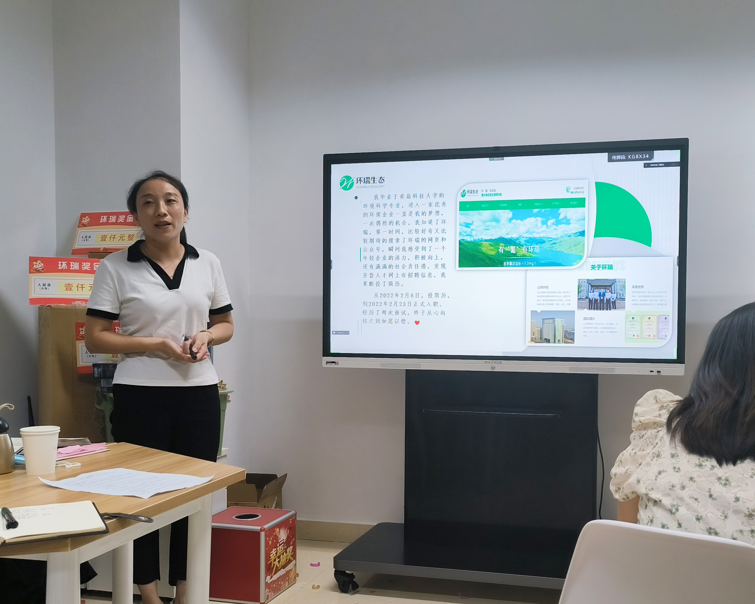 隨著公司的發展壯大,也有越來越多的伙伴加入到環瑞生態大家庭中,在與公司共同成長的過程中,有趣的故事時刻都在上演著。會上,環瑞生態新人代表李小梅為大家講述了《我和環瑞的故事》,風趣幽默的話語間,流露著她對環瑞真摯的熱愛,引得大家陣陣掌聲。