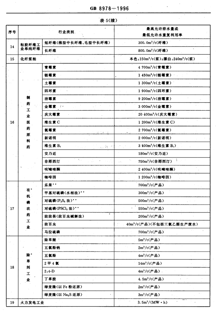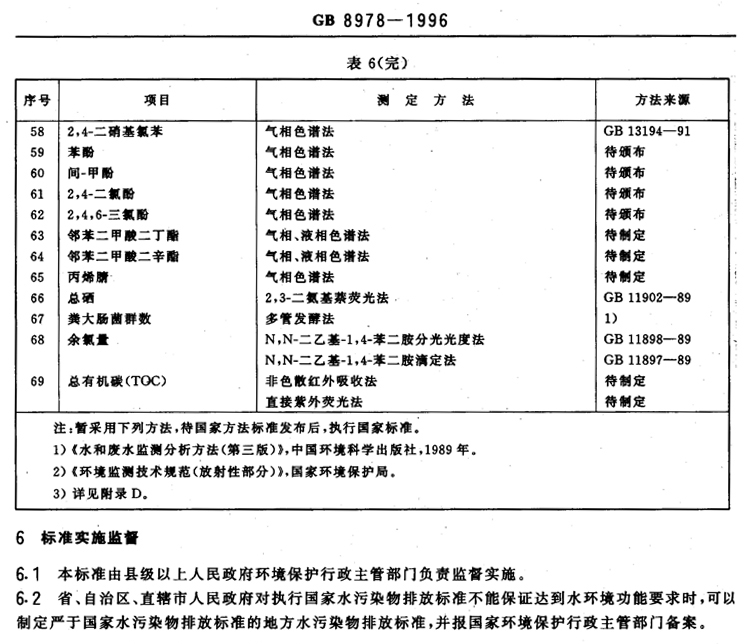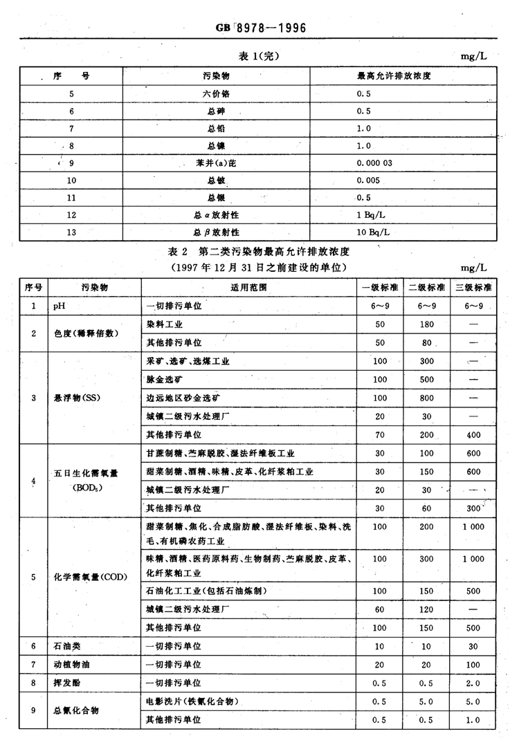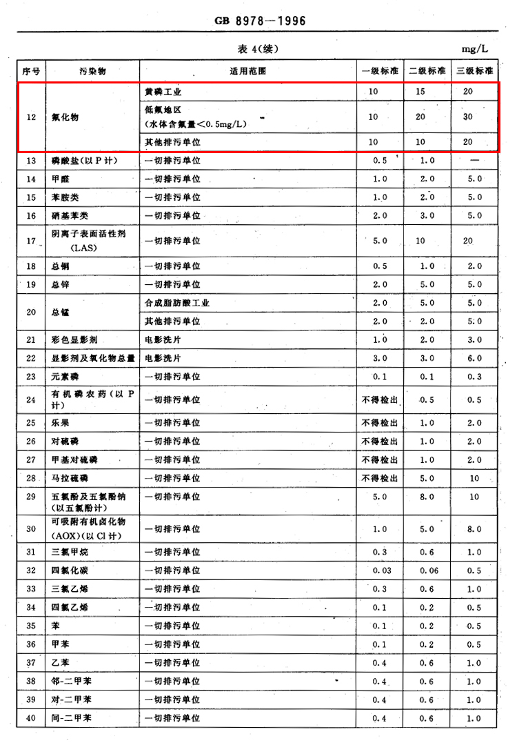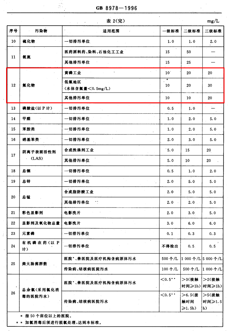 氟化物之《污水綜合排放標準》GB8978-1996