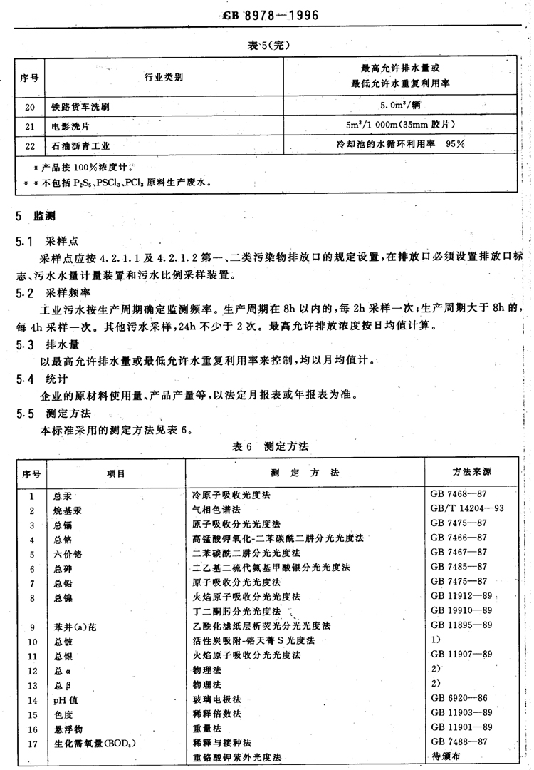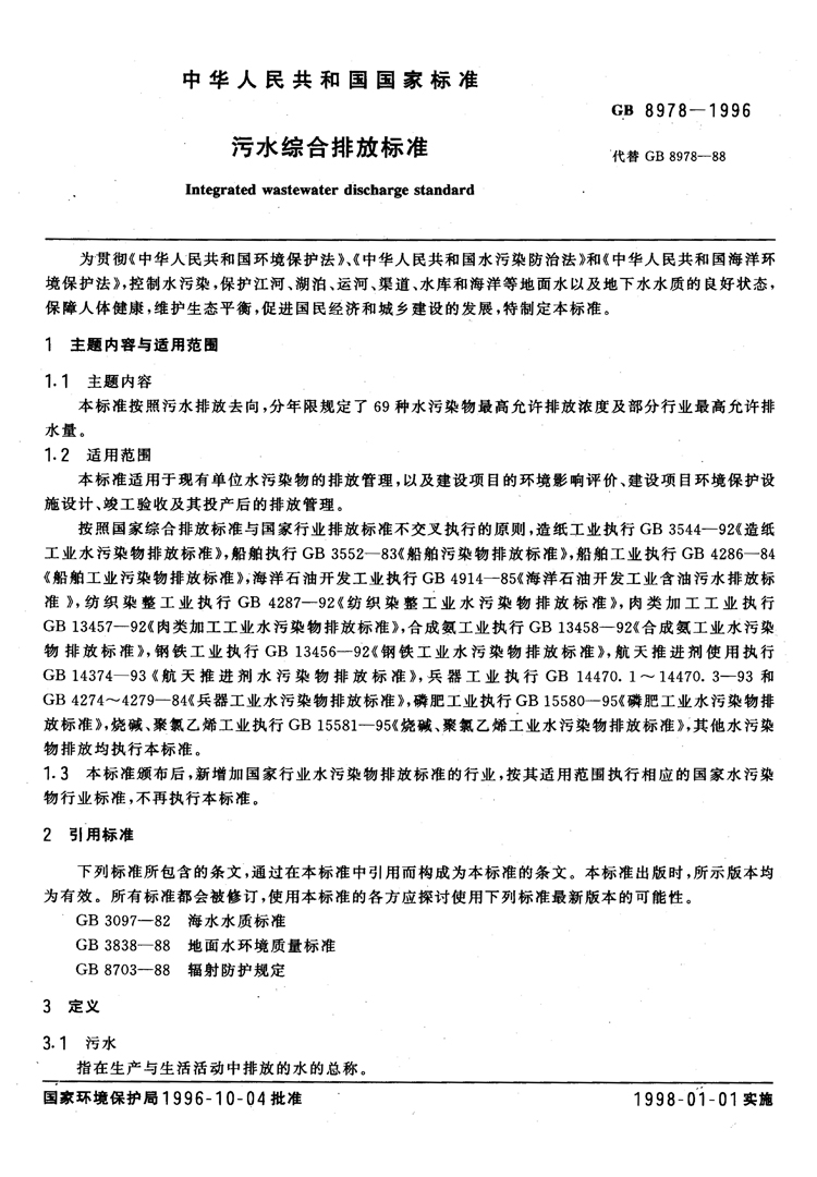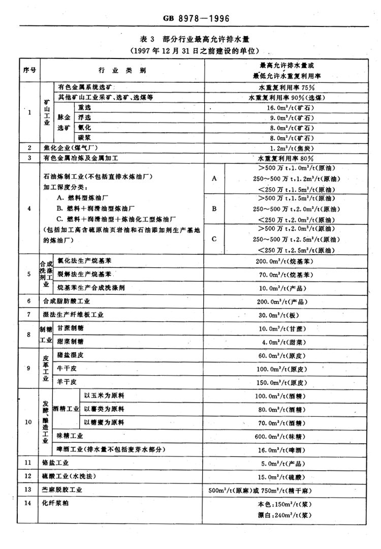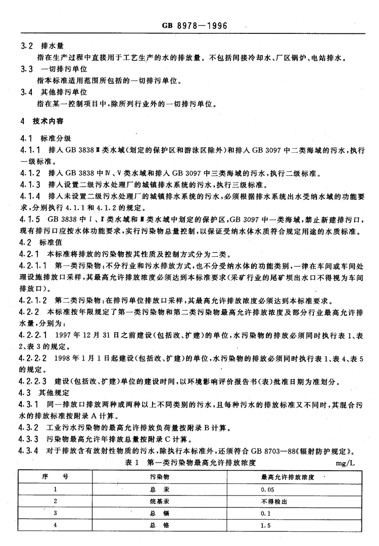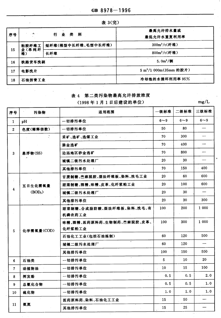 氟化物之《污水綜合排放標準》GB8978-1996