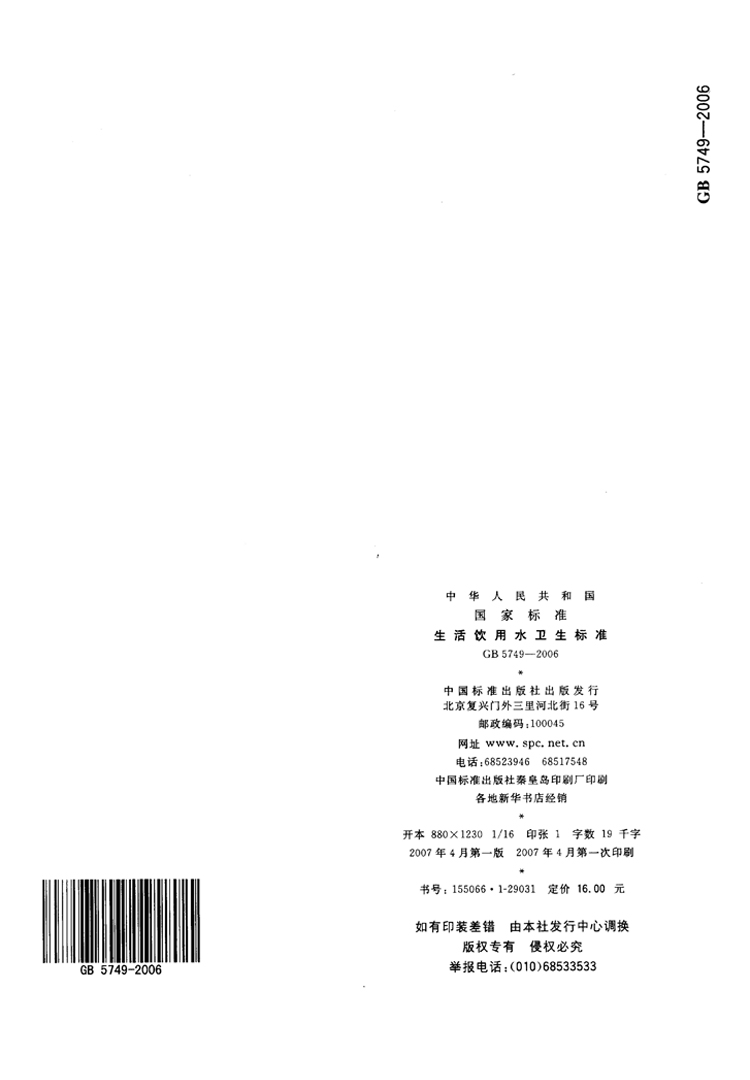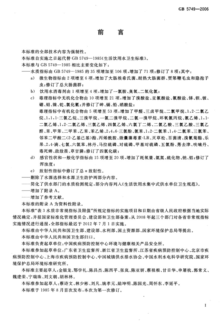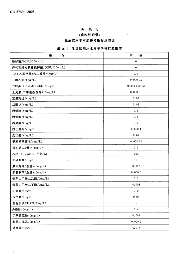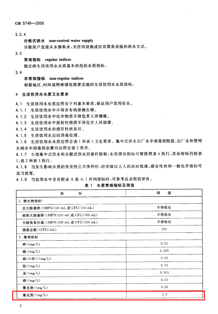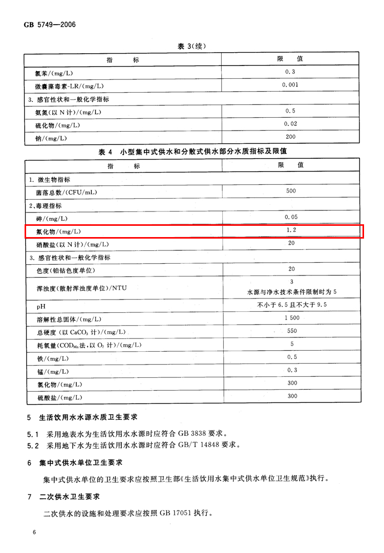氟化物之《生活飲用水衛生標準》GB5749-2006